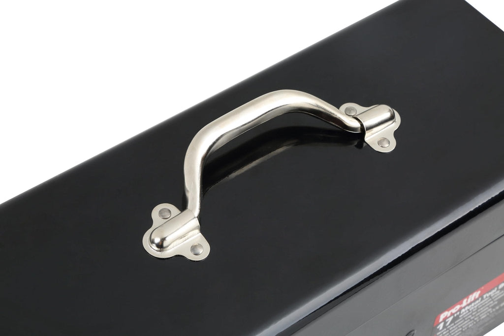 - Durable all steel toolbox with removable tote tray for extra storage, made of high quality steel, with black powder coat finish
